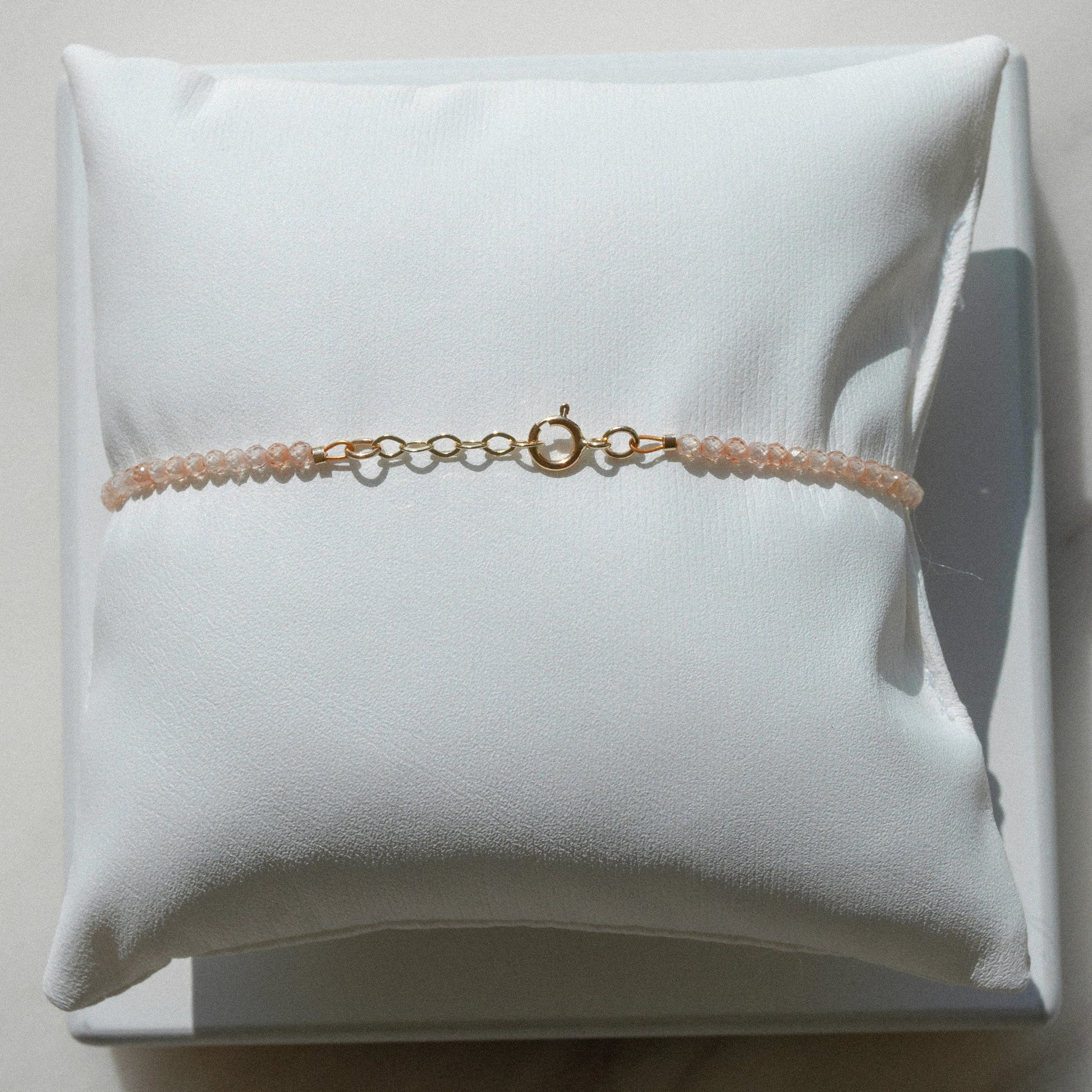 Delicate diamond bracelet made of 0.03ct diamond and beige zirconia beads.
