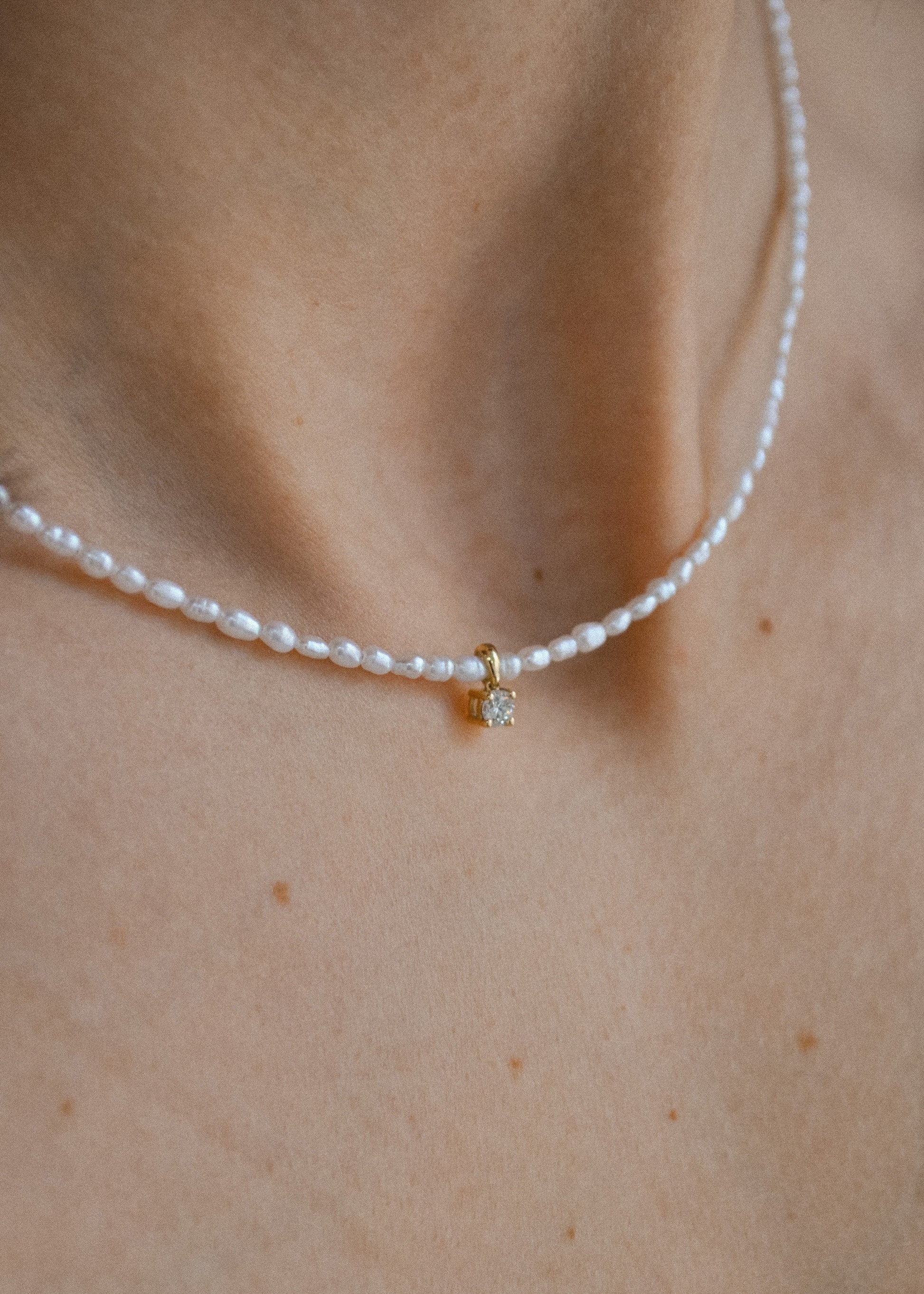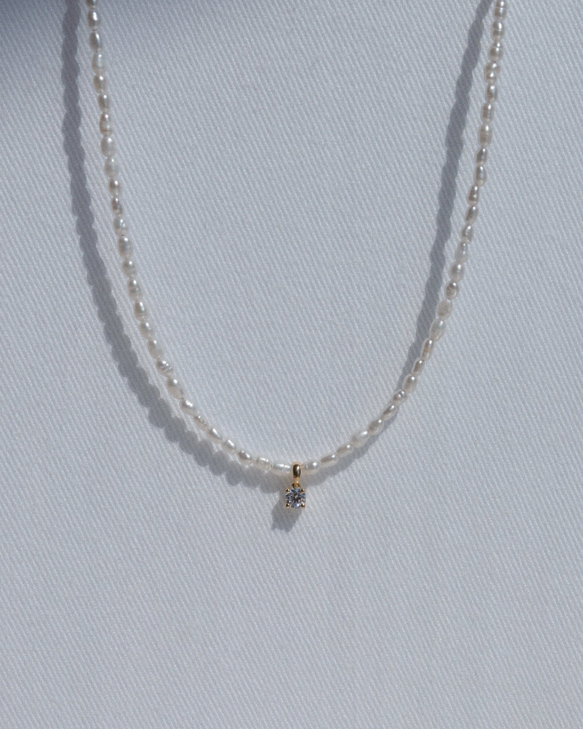 A classic with a twist! The four prong 0.12ct diamond combined with freshwater pearls makes this piece the perfect diamond necklace.